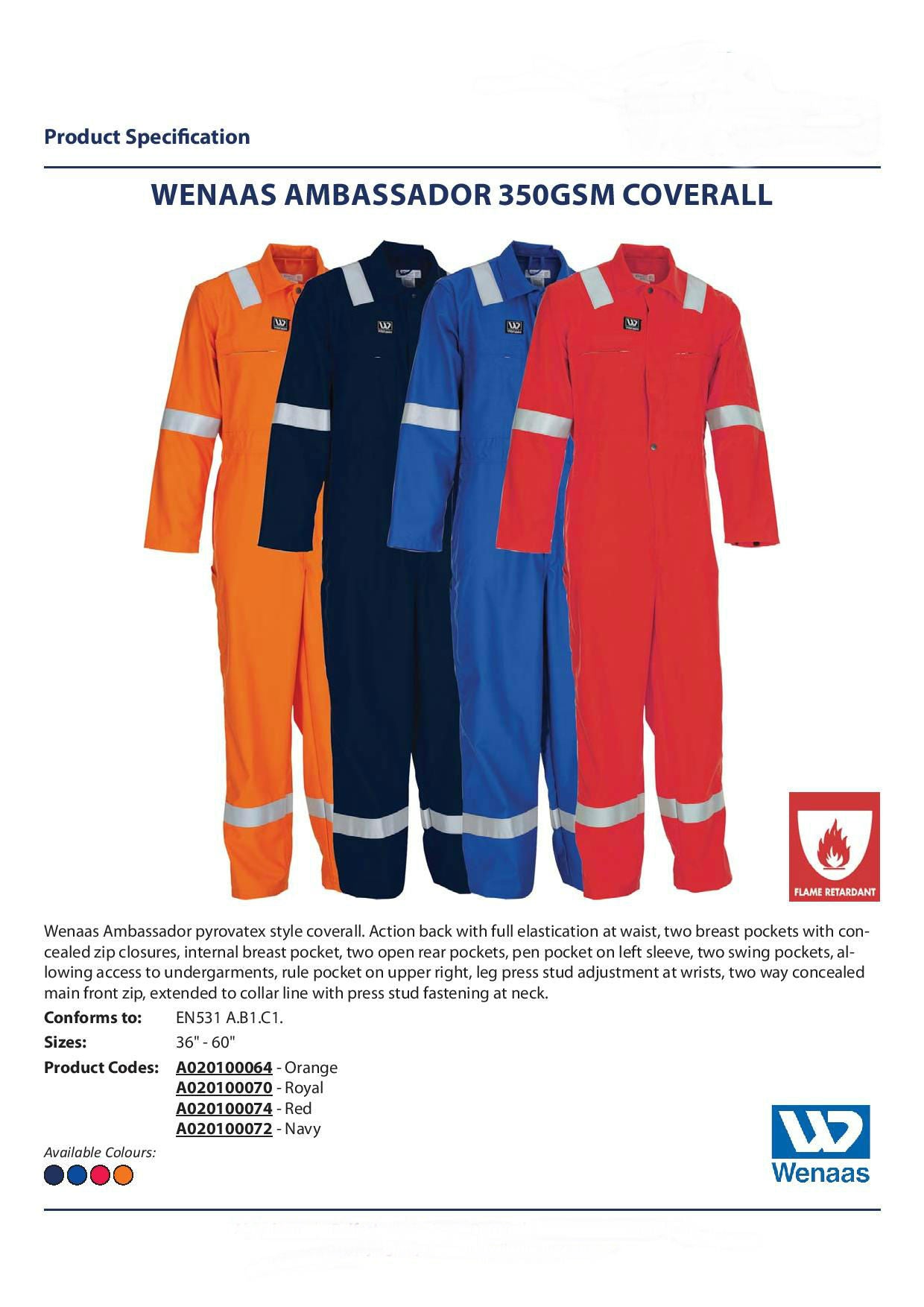 Wenaas Ambassador 350gsm Insulated FR Coverall 81750-196 Various Colours