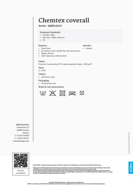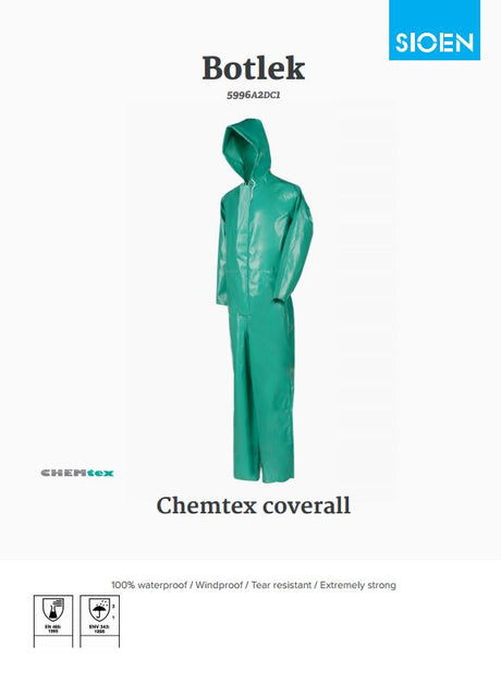 Sioen Waterproof Windproof Botlek 5996 Chemtex Green Coverall