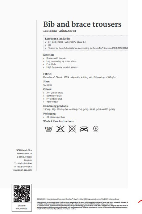 Sioen Louisiana Waterproof Bib & Brace Navy Trousers 4600