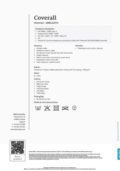 Sioen Montreal 4964 Waterproof Windproof Work Navy Rain Coverall