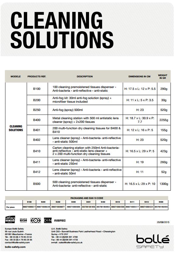 The B200 anti-fog cleaning solution from Bolle is alcohol and silicone free.