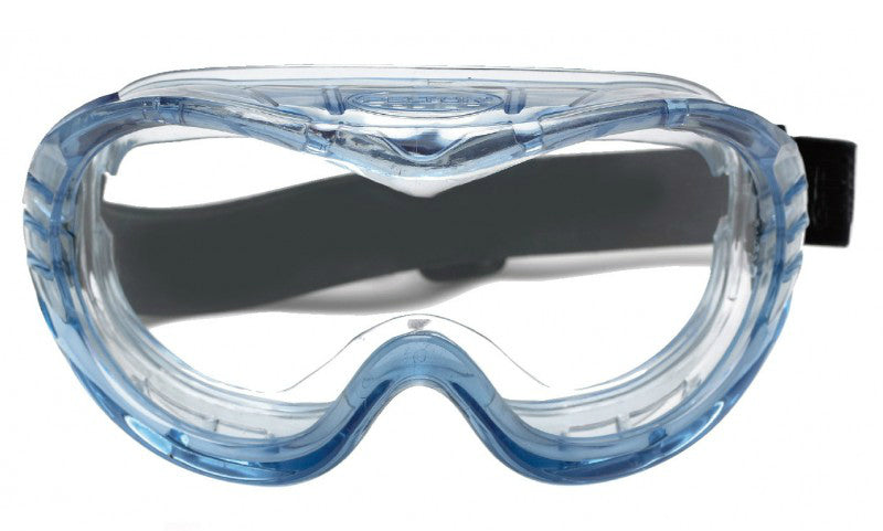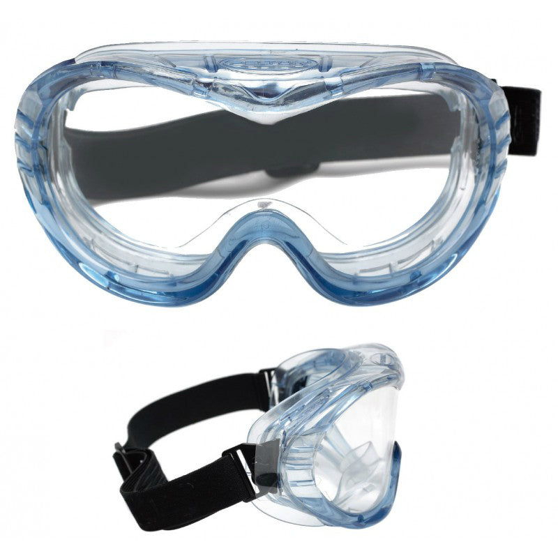 Soft PVC crystal frame goggles with a wide support area all around the face to enhance comfort.