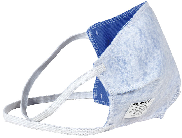 The external layer made of water repellent recycled polypropylene OEKO-TEX® protects the end user from the saliva droplets expelled during expiratory activities or present in the air, whereas the internal layer made of cotton, in contact with the face, provides pleasant comfort.