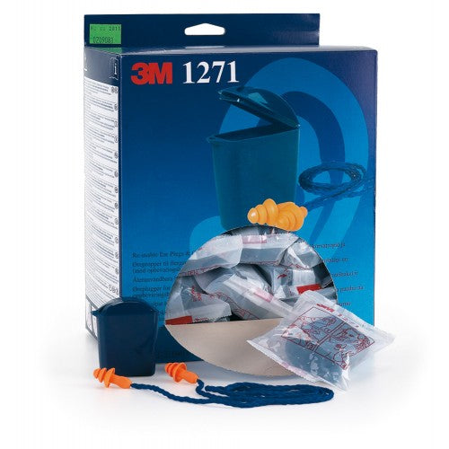 3M 1271 Re-usable Ear Plugs with Storage Case Box Of 50