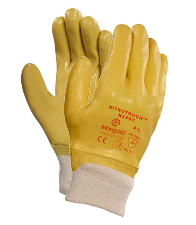 Ansell Nitrotough N250Y Nitrile Full Coated Cotton Liner Work Gloves