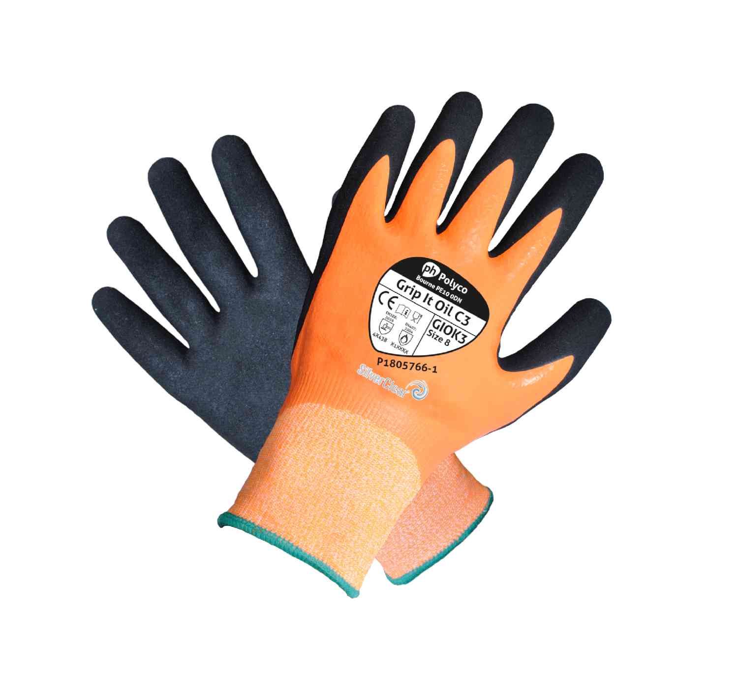 Polyco Grip It® Oil C3 Safety Gloves Dual Nitrile Coating Level B Cut Resistant