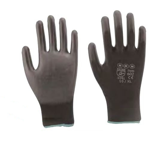 The seamless 13-gauge knitted Nylon liner has a PU palm and finger coating,