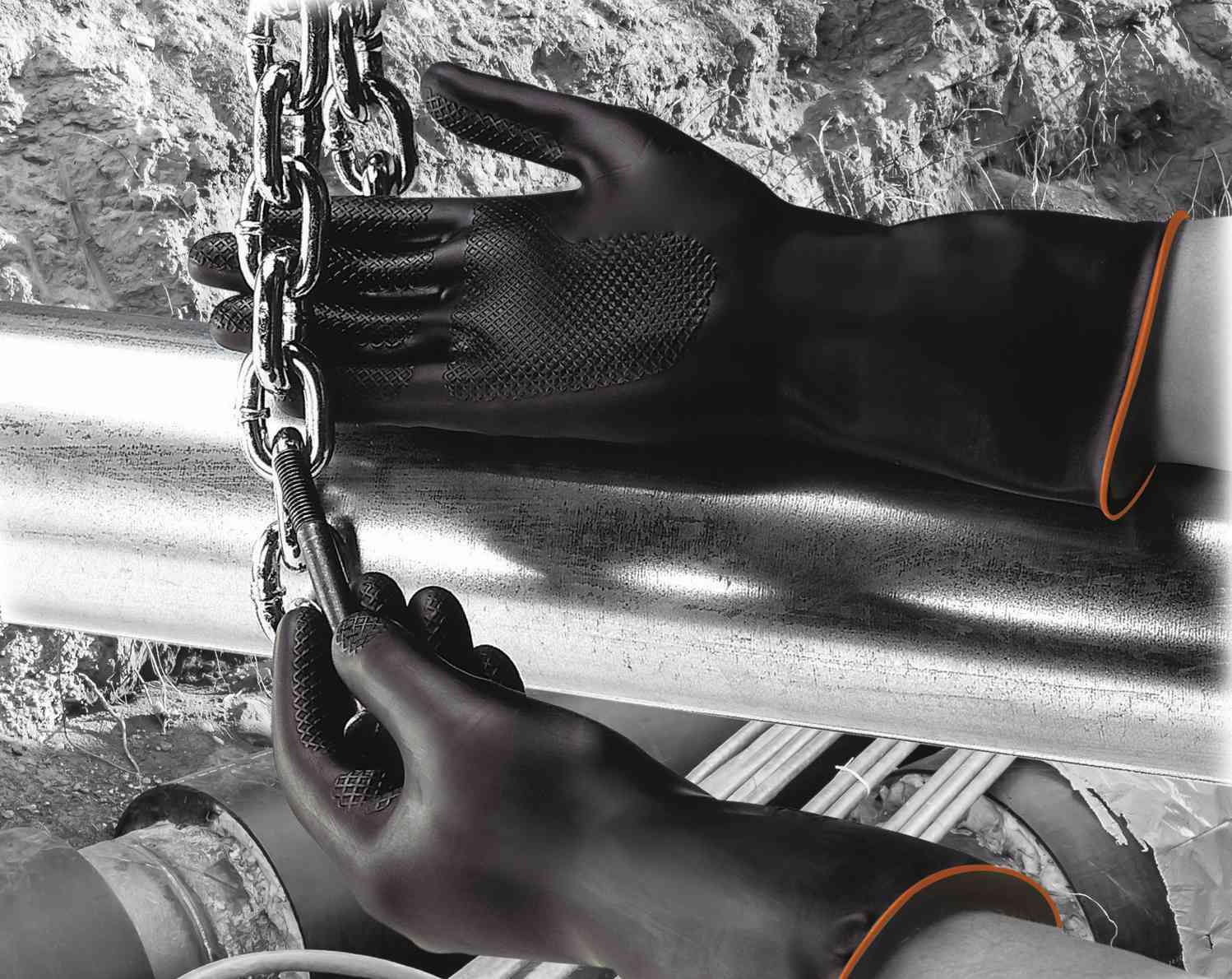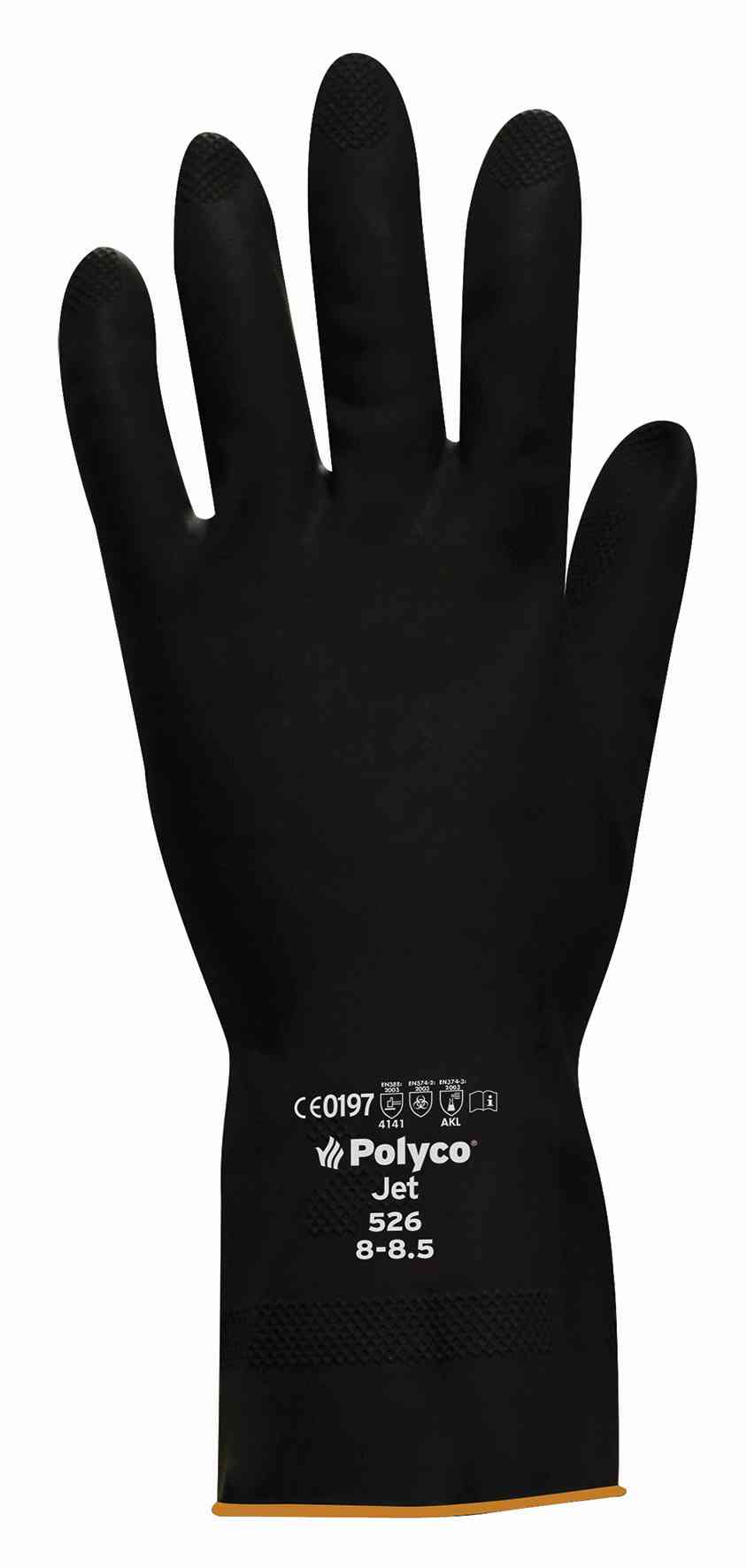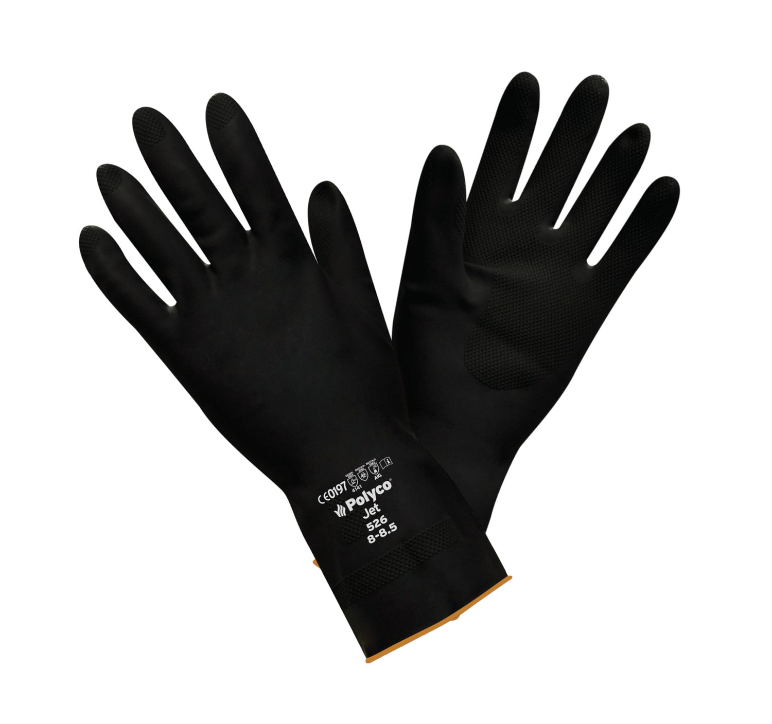 Polyco Jet Heavy Duty Gauntlets Reusable Natural Rubber Black