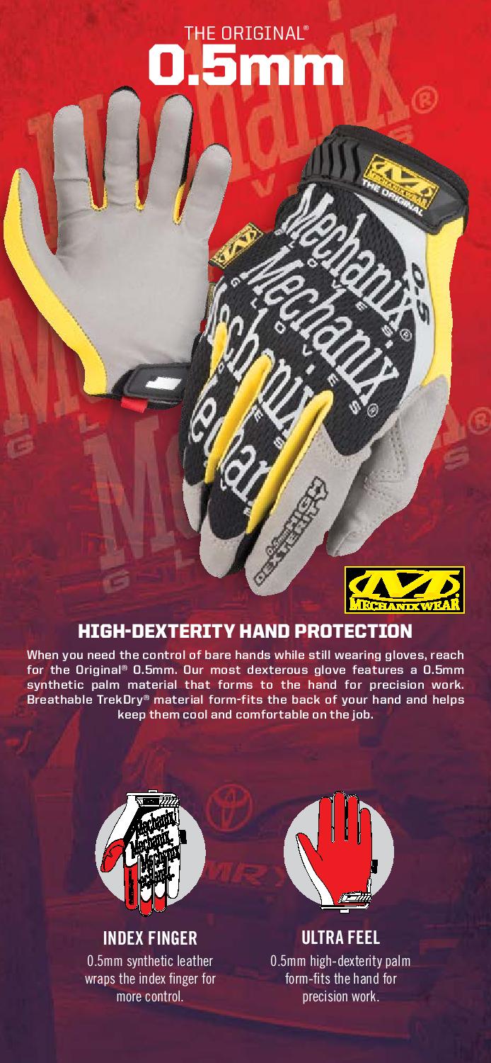 Mechanix most dexterous glove features a 0.5mm synthetic leather palm for superior feel and pinpoint precision with intricate tasks.
