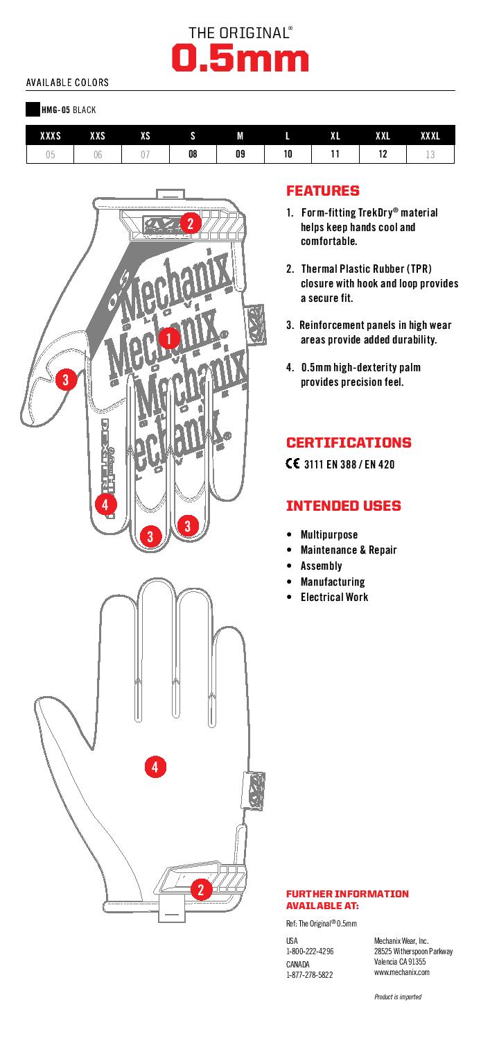 Mechanix HMG-05 Original 0.5mm Protective Glove