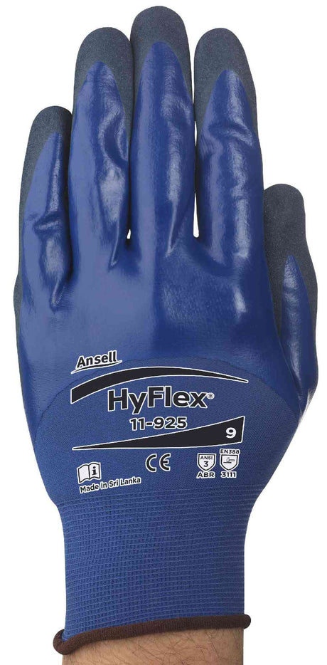 Ansell 11-925 HyFlex Work Gloves Nitrile Oil Repellent ¾ Coating