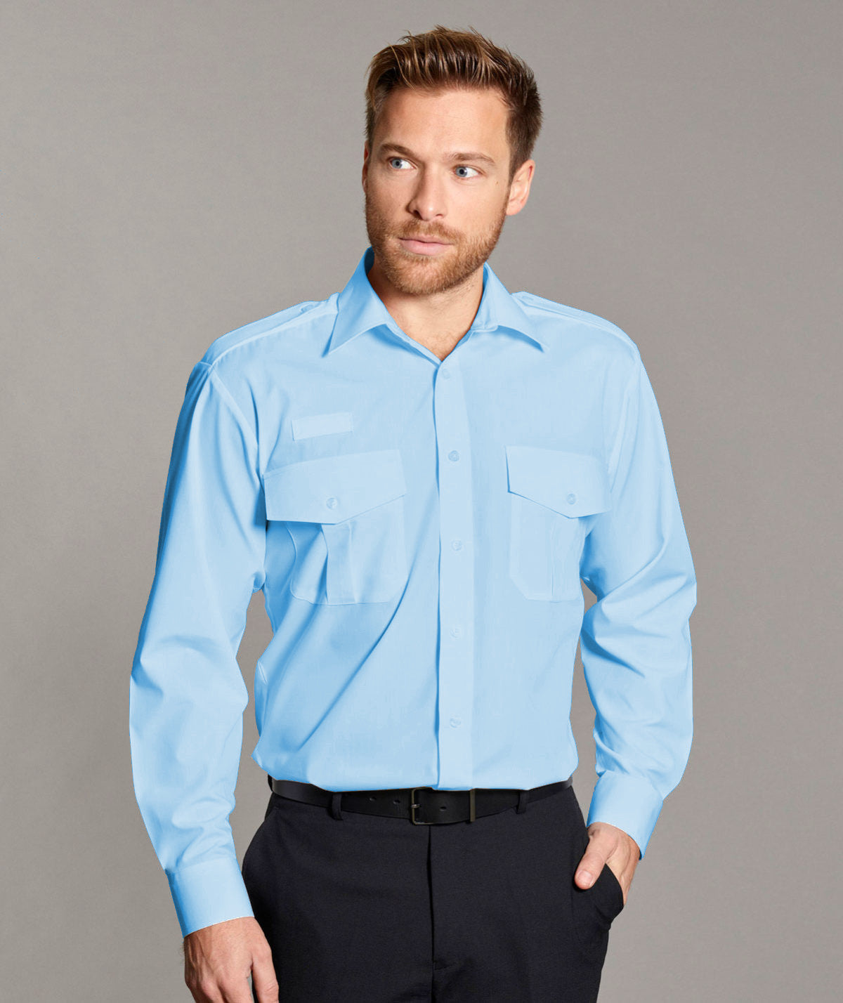 Classic cut pilot shirt with radio loop and classic collar.