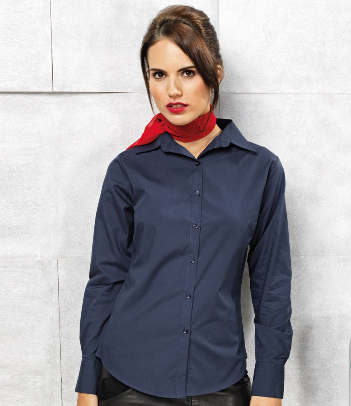 Premier PR300 Ladies Poplin Long Sleeve Blouse Navy
