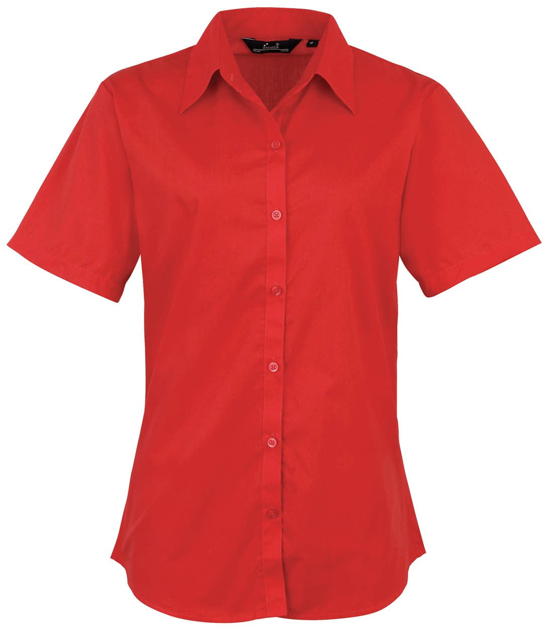 Premier PR302 Ladies Poplin Short Sleeve Blouse - Red / 10 is backordered and will ship as soon as it is back in stock.
