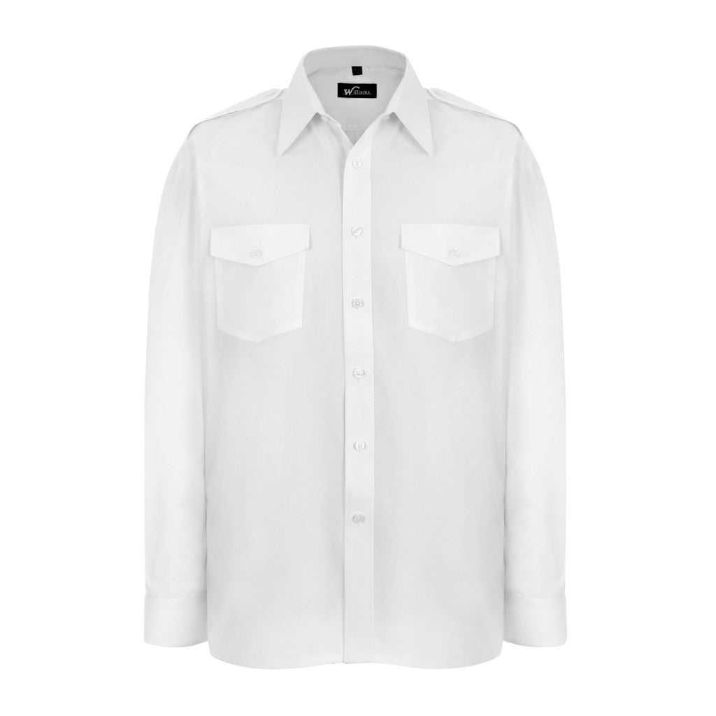 Williams range pilot shirt, manufactured in superior quality easy-care polyester fabric.