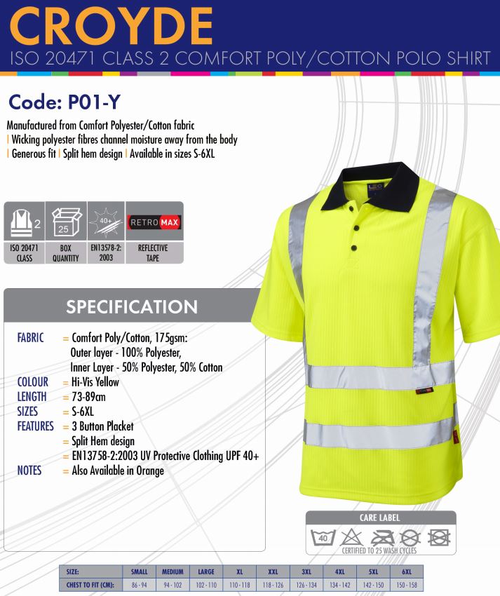 Leo Workwear Croyde P01 Class 2 High Visibility Comfort Polo Shirt
