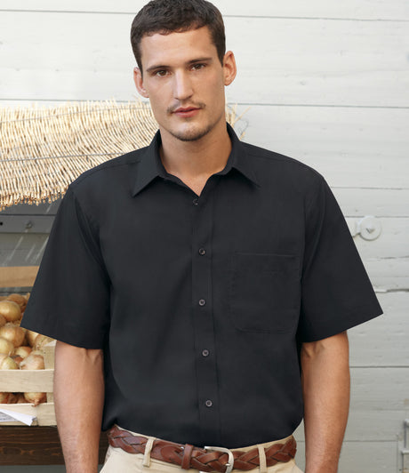 Fruit of the Loom SS411 Men Poplin Shirt Short Sleeve Black