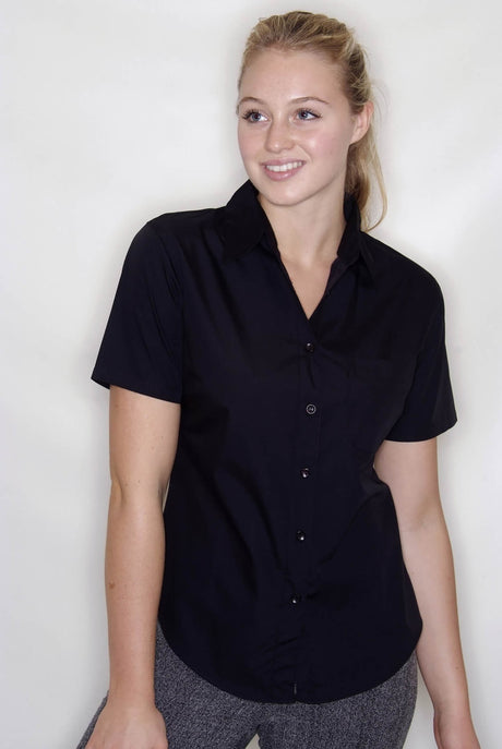 Fruit of the Loom SS481 Short Sleeve Black Ladies Poplin Shirt