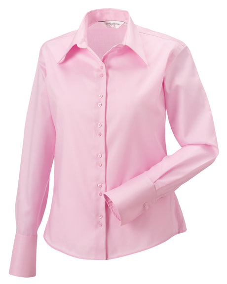 Russell Collection 956F Ladies Shirt Long Sleeve Non-Iron Cotton Pink