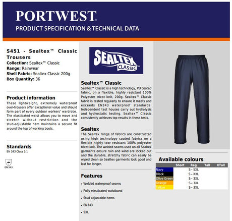Portwest Sealtex Over Trousers S451 Waterproof Navy