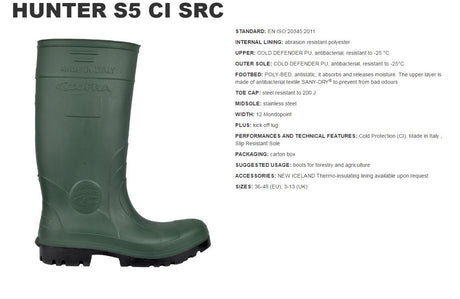 Cofra Hunter Abrasion Resistant Steel Toe Cap S5 Safety Wellington Green PU