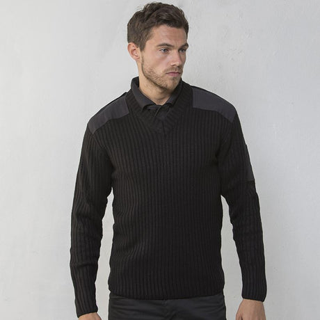 RTY Workwear RT022 Men V-Neck Security Jumper Black Ribbed, Size - Large