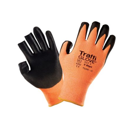 TraffiGlove Amber 3 Digit Safety Gloves PU Coating Level 3 Cut Resistant Size 6