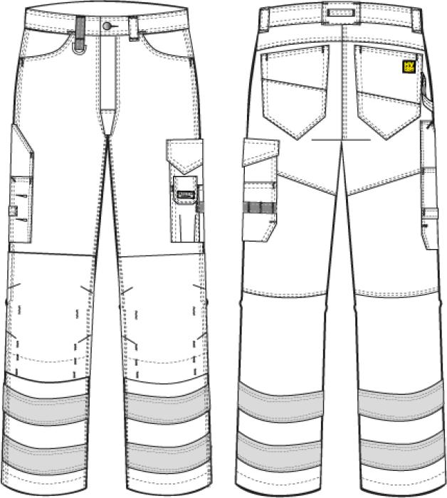 These trousers include hip pockets, cargo pocket with extra pocket to carry tools, mobile phone pocket and loop strip for hanging tools such as a hammer.