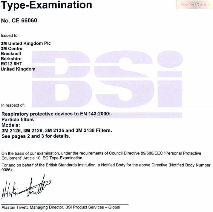 3M 2138 P3R Particulate Disk Filters conforms to: EN143 : 2000, CE Approved.