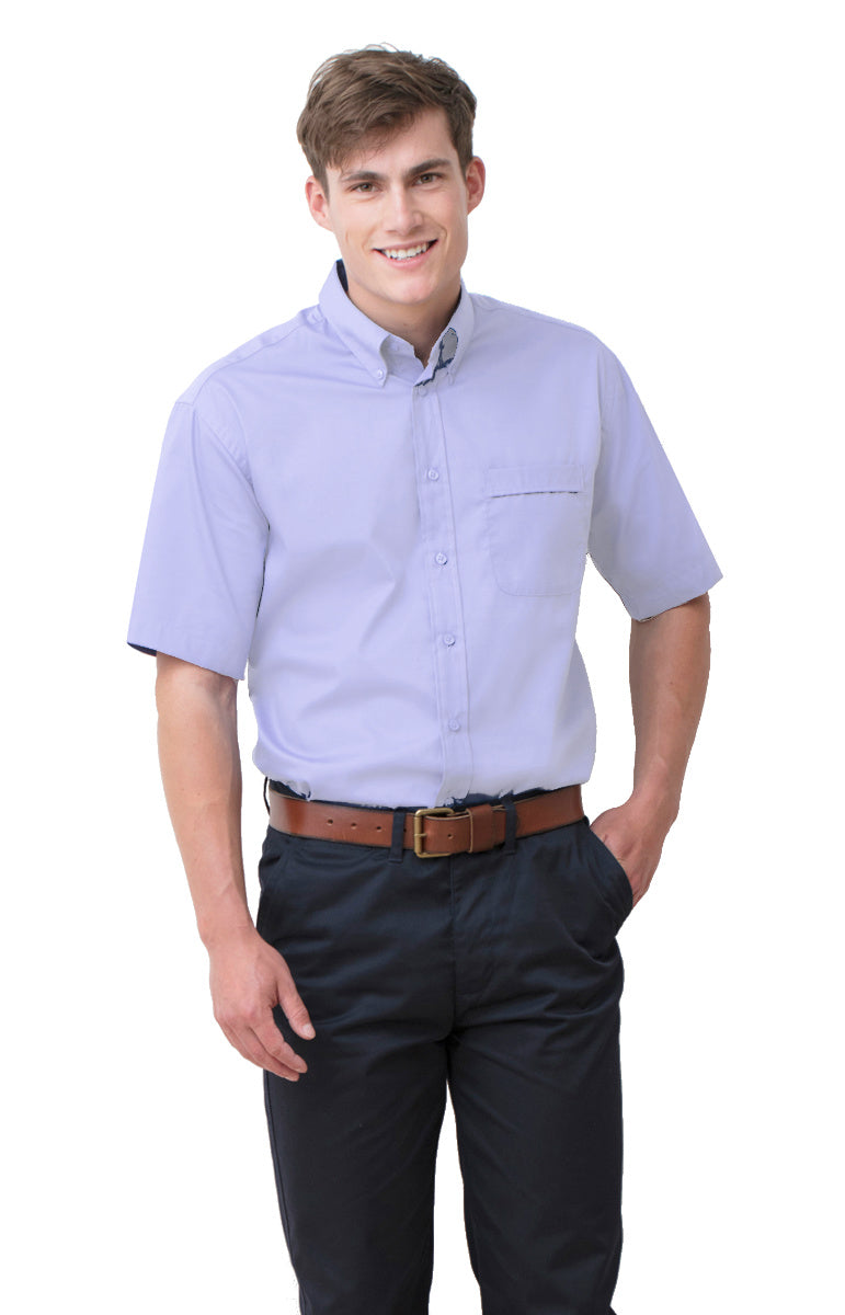 The Henbury H555 Short Sleeved Oxford Shirt in 80% Cotton / 20% Polyester Easycare fabric.