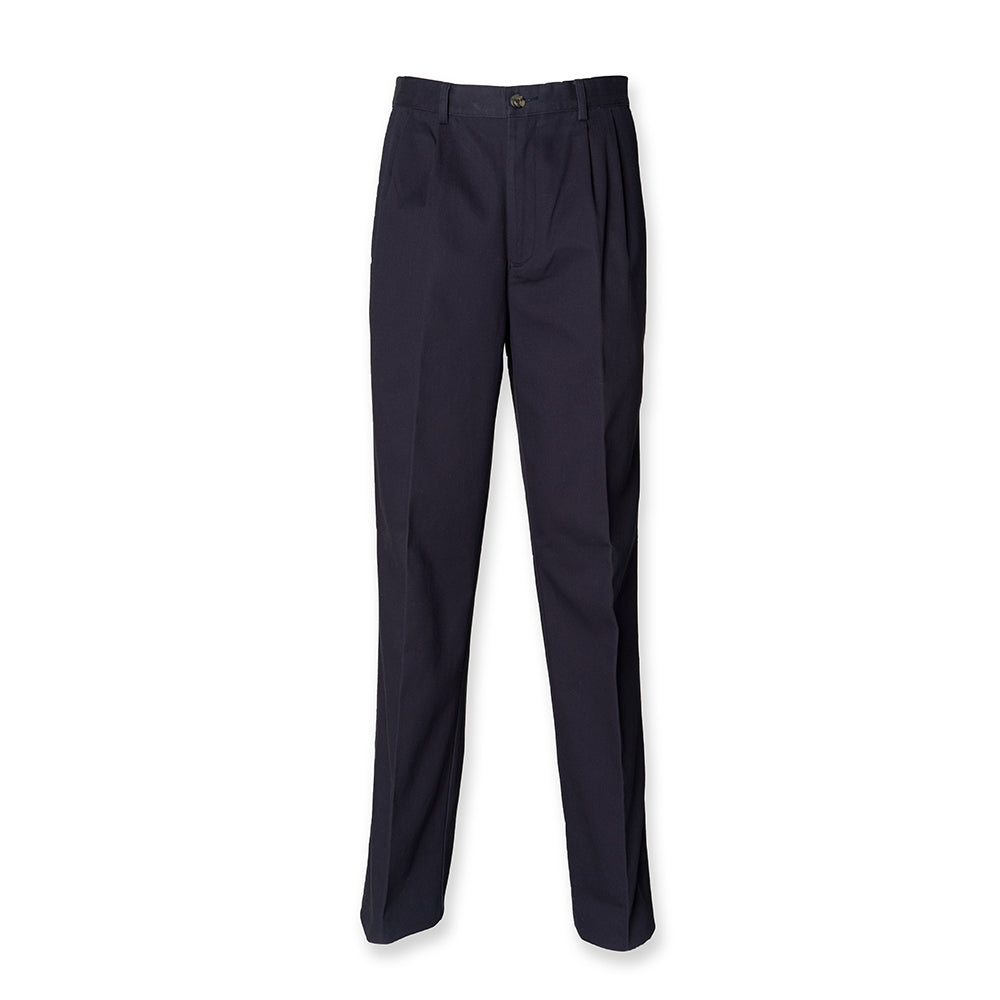 Henbury H600 Mens Work Trousers Front Pleat Chino Formal Suit Cotton Pants Navy
