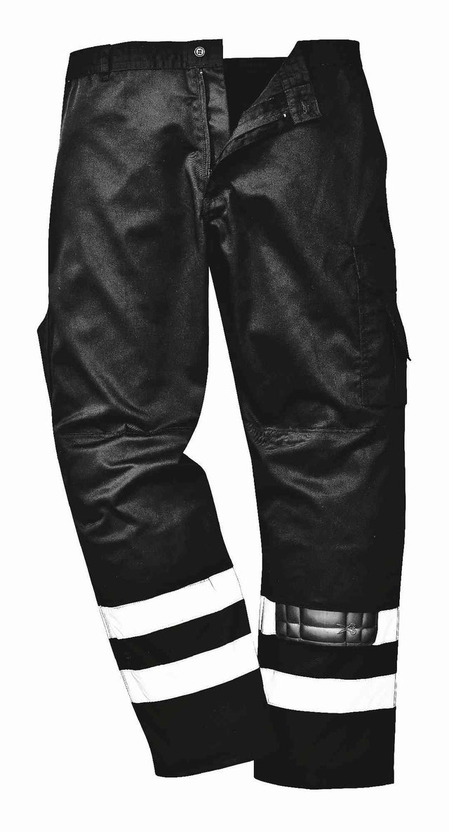 Portwest S917 Iona Polycotton Reflective Tapes Work Combat Trousers Black Size XL