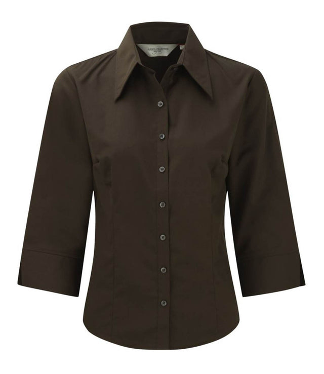 Russell Collection 954F Ladies ¾ Sleeve Tencel Fitted Shirt Chocolate Brown
