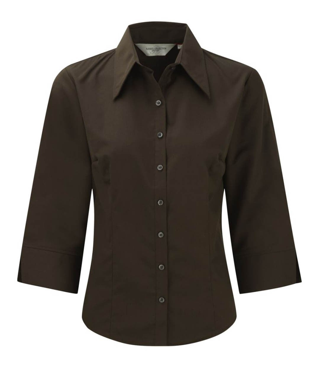 Russell Collection 954F Ladies ¾ Sleeve Tencel Fitted Shirt Chocolate Brown, Size - 12 - Brown / 12 is backordered and will ship as soon as it is back in stock.