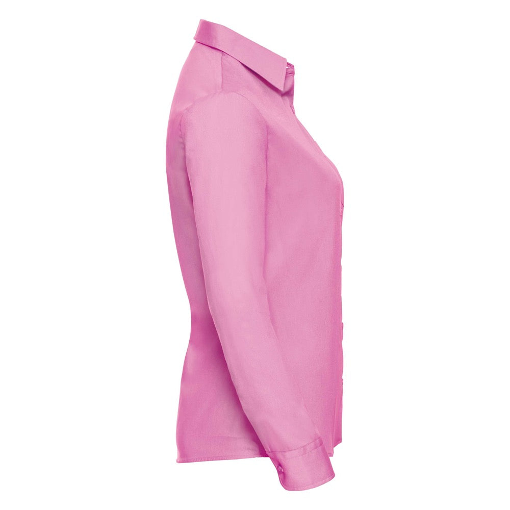 Russell Collection Ladies Shirt Long Sleeve Cotton Poplin Pink, Size - 12